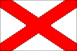 Beschreibung: Im mit Gold und Blau gevierten Wappen im ersten Feld ein rotes Andreaskreuz und ein rotes Fünfblatt mit blauen Butzen im vierten Feld gegenüber. Das zweite Feld zeigt einen goldenen Sparren von drei goldene Birnen begleitet und gegenüber drei Muscheln (2,1) gestellt im dritten Feld.