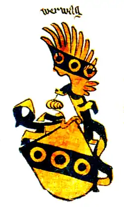 - Wappen derer von Berwangen, hier mit silbernen Ringen, im Buch der Wappen besonders von deutschen Geschlechtern (BSB Cod.icon. 309, Süddeutschland 1475), bei der Kategorie Familienwappen des Hohen Adels, 42 r., was aber eigentlich in die Kategorie Familienwappen des höheren und Turnieradels gehört: verballhornt betitelt als "Wer mag" (korrigierend wurde unter das "W" mit Bleistift ein "B" gesetzt, was dann "Ber mag" hieße und dem eigentlichen Geschlechtsnamen "Berwang(en)" schon etwas näher käme)