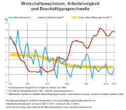 „Das aus dem Gesetz von Verdoorn abgeleitete Konzept der Beschäftigungsschwelle postuliert einen kausalen Zusammenhang, nach dem das Beschäftigungswachstum vom Wirtschaftswachstum abhängt. Die theoretische Fundierung kann zum einen diese Kausalität kaum stützen. Zum anderen ist die beobachtbare Korrelation beider Größen empirisch nicht stabil. Die Höhe der Beschäftigungsschwelle hängt nicht unwesentlich davon ab, welcher Stützzeitraum für ihre Berechnung herangezogen wird. Ein empirischer Test für verschiedene Zeiträume kann für Deutschland letztlich keine Hinweise darauf geben, wo die Gründe der gegenwärtigen Beschäftigungsprobleme liegen. Auch das Gesetz von Okun, das einen Zusammenhang zwischen dem Wirtschaftswachstum und der Arbeitslosigkeit beschreibt, eignet sich nicht zur Erklärung der Arbeitslosigkeit. Gleichwohl deuten die Befunde darauf hin, dass der deutsche Arbeitsmarkt nur gering auf konjunkturelle Impulse reagiert.“