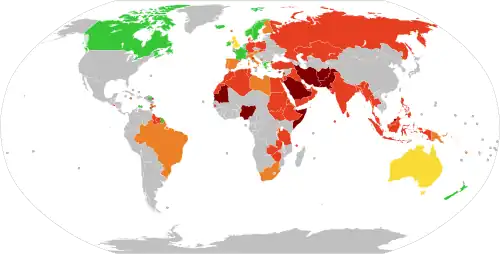 In Irland schrieb Artikel 40 der Verfassung vor, dass die Veröffentlichung blasphemischen Materials strafbar sein soll.[78] Ein entsprechendes Gesetz gab es seit 1961, aufgrund seiner unklaren Definition von Blasphemie kam es aber zu keiner einzigen Verurteilung.[79] Im Rahmen einer Rechtsreform im Juli 2009 wurde die entsprechende Strafvorschrift mit Wirkung zum 1. Januar 2010 neu gefasst.[80] Im Oktober 2014 kündigte die irische Regierung an, ein Referendum über die Abschaffung des Blasphemieartikels in der irischen Verfassung abzuhalten.[81] Am 26. Oktober 2018 fand dieses Referendum (zusammen mit der Präsidentschaftswahl in Irland) statt; 64,85 Prozent votierten für die Streichung von Artikel 40.[82][83]