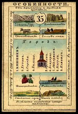 Außer der bessarabischen Hauptstadt Kischinau, russisch Kischinjow, rumänisch Chișinău, gab es keine bedeutenden Städte. Kischinjow am Rande des russischen Imperiums genoss jedoch in den ersten Jahrzehnten nach der Eroberung durch Russland keinen guten Ruf im Kaiserreich, sondern galt als Strafversetzungslager für Unzufriedene und Aufmüpfige. Der junge russische Nationaldichter Alexander Puschkin war von 1820 bis 1823 als Übersetzer nach Kischinjow verbannt worden und schrieb über die Stadt: