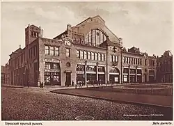 1904 stiftete der Kiewer Zuckerbaron, Mäzen und Philanthrop Lasar Brodskyj (ukr. Лазар Ізраїльович Бродський) der Stadt 500.000 Rubel zum Bau einer Markthalle, die dann zwischen 1910 und 1912 nach Plänen des Warschauer Architekten Henryk Julian Gay im rationalen Jugendstil erbaut wurde. Die Halle hat ein 15 m hohes Glasdach und eine mit Reliefs mit Nutzvieh und bäuerlichen Szenen geschmückte Fassade.[1][1][2]