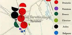 Nach der rumänischen Volkszählung von 1930 lebten 3500 Deutsche, 1550 Juden, 500 Russen, 150 Bulgaren und 100 Rumänen in Tarutino.
