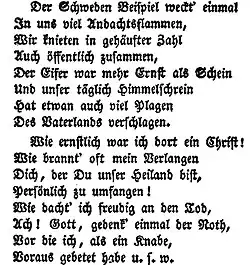 Der Lyriker Johann Christian Günther war als zwölfjähriges Kind in Striegau aktiver Teilnehmer an den evangelischen Kinderandachten. In einem Gedichtezyklus Als er sich seiner ehemaligen Jugendjahre mit Schmerzen erinnerte schrieb er folgende nebenstehende Verse. Zur Erinnerung an die Kinderandachten wurden an verschiedenen Orten Gedenkmedaillen geprägt.