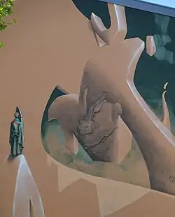 | Loomit | 2019 | Loomit aka Matthias Köhler (München)[4] | Loomit stellt mit dem Dürer-Hasen in der Bildmitte einen lokalen Bezug zu Nürnberg her. | Windthorststraße 3 49° 23′ 58″ N, 11° 8′ 45″ O |
