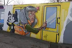 | Diversity | 2019 | Tizer, Shucks, Relay (London)[4] | Tizer und Shucks gestalteten die Raumschiffe und den Raumfahrer, Relay den Schriftzug. | Windthorststraße 3 49° 23′ 58″ N, 11° 8′ 44″ O |