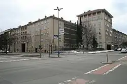 Den Zweiten Weltkrieg überstand die Anlage relativ unbeschadet. Das südliche Eckhaus an der Knobelsdorffstraße / Ecke Königin-Elisabeth-Straße wurde zerstört und später wieder aufgebaut. Der Betriebshof konnte ab dem 14. Juni 1945 wieder genutzt werden. Personenverkehr zum Betriebshof fand ab dem 9. Juli 1945 wieder statt.[7] Ab dem 1. April 1950 bis zur Einstellung des Personenverkehrs am 2. Mai 1962 fuhr in der Straße die Linie 60 nach Schöneberg.[8][9] Die Strecke diente danach bis zur vollständigen Betriebseinstellung am 2. Oktober 1967 als Betriebsstrecke.