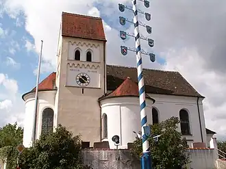 Das Kirchdorf Beuern liegt circa zwei Kilometer nördlich von Greifenberg.