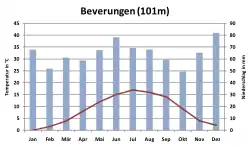Klimadiagramm für Beverungen (101 m) (Temperatur für Beverungen-Drenke)