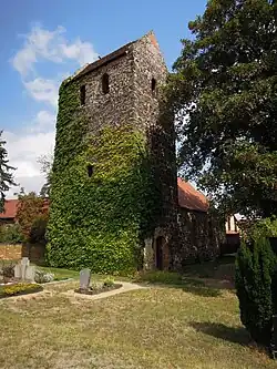 Das Kirchengebäude ist ein kleiner einschiffiger romanischer Bruchsteinbau mit eingezogenem Chor und jüngerem, geraden Ostschluss. Die Bruchsteine sind wahrscheinlich dem nahen Quetzer Bruch entnommen worden. Die ursprüngliche Form ist trotz Umbauten im 17. Jahrhundert noch gut erkennbar. Der Westquerturm hat Schallöffnungen und ein Satteldach. Der Turmraum ist in das Schiff einbezogen. Die Fenstergewände bestehen aus Backstein. Die innere Holztonne besitzt eine umlaufende Empore, datiert auf das Jahr 1612. Die Patronatsloge befindet sich an der Nordseite, ein schlichter Kanzelaltar aus dem 18. Jahrhundert an der Ostseite. Im Innern befindet sich zudem eine Sandstein-Taufe, datiert auf das Jahr 1674. Außen am Turm stehen einige Grabsteine, teilweise aus dem Barock. Im Inneren ist weiter ein spätgotischer Sakramentsschrein in der Ostwand. Das leere Sepulcrum in der Altarmensa ist von ungewöhnlich länglicher Form.
