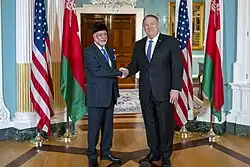 Unter Sultan Qabus profilierte sich der Oman zudem als neutraler Vermittler in regionalen Konflikten. So war Maskat ein geheimer Treffpunkt für erste direkte Gespräche zwischen amerikanischen und iranischen Vertretern im Jahr 2013, die den Grundstein für das spätere Atomabkommen (JCPOA) legten.[3] Der Oman spielte wiederholt eine humanitäre Vermittlerrolle – etwa bei der Freilassung von in Iran festgehaltenen US-Bürgern.[4] Die traditionell freundschaftlichen Beziehungen wurden auch nach dem Thronwechsel zu Sultan Haitham ibn Tariq im Jahr 2020 fortgesetzt. 2025 vermittelte der Oman erneut bei Gesprächen zwischen dem Iran und den Vereinigten Staaten über ein neues Atomabkommen.[5]