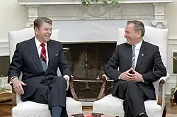 Ab den 1960er Jahren betrieb Ungarn unter János Kádár eine vorsichtige Öffnung („Gulaschkommunismus“), was die Beziehungen zu den USA ein wenig verbesserte. Am 6. Januar 1978 übergab US-Außenminister Cyrus Vance die Stephanskrone feierlich an Ungarn zurück, welche sich seit dem Ende des Zweiten Weltkriegs im Besitz der USA befunden hatte. In den 1980er Jahren intensivierten sich die Kontakte allmählich im Zuge der Ost-West-Entspannung. Die USA beobachteten wohlwollend, dass Ungarn unter anderem ab 1988 Reiseerleichterungen für seine Bürger einführte. Der amerikanische Präsident George H. W. Bush besuchte im Juli 1989 als erster US-Präsident überhaupt Ungarn.[1] In Budapest hielt er vor begeisterten Zuhörern – wenige Monate vor dem Fall des Eisernen Vorhangs – eine Rede, in der er die ungarischen Reformbestrebungen lobte und weitere Unterstützung in Aussicht stellte.