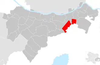 | Gemeinde | Lage | Ew | km² | Ew / km² | Gerichtsbezirk | Region | Typ |