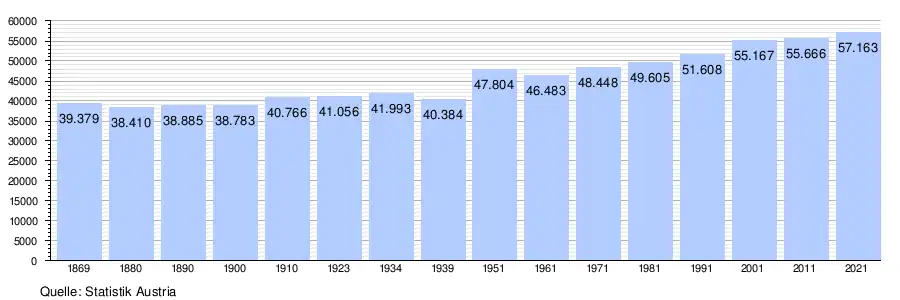 - ↑ Statistik Austria – Bevölkerung zu Jahresbeginn nach administrativen Gebietseinheiten (Bundesländer, NUTS-Regionen, Bezirke, Gemeinden) seit 2002 (ODS)