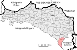 - ↑ Reichs-Gesetz-Blatt für das Kaiserthum Österreich 1865, XXVI. Stück, Nr. 92: „Verordnung des Staatsministeriums vom 23. September 1865, über die Aufhebung der Kreisbehörden in Galizien“