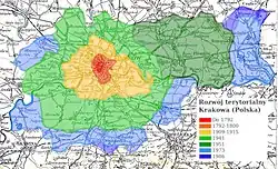 Der neue politische Bezirk Krakau wurde aus folgenden Bezirken gebildet:[7]