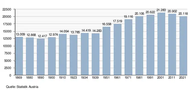 - ↑ Statistik Austria – Bevölkerung zu Jahresbeginn nach administrativen Gebietseinheiten (Bundesländer, NUTS-Regionen, Bezirke, Gemeinden) seit 2002 (ODS)