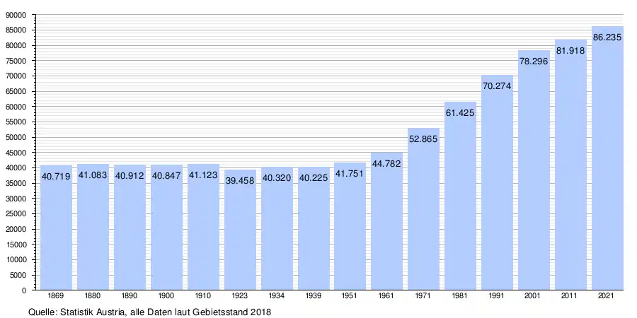 - ↑ Statistik Austria – Bevölkerung zu Jahresbeginn nach administrativen Gebietseinheiten (Bundesländer, NUTS-Regionen, Bezirke, Gemeinden) seit 2002 (ODS)