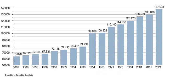 - ↑ Statistik Austria – Bevölkerung zu Jahresbeginn nach administrativen Gebietseinheiten (Bundesländer, NUTS-Regionen, Bezirke, Gemeinden) seit 2002 (ODS)
