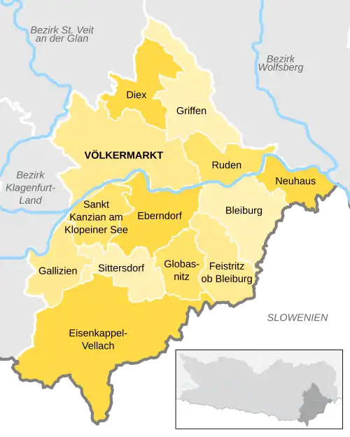 - ↑ WIBIS Kärnten, Bezirksprofil 2019, Völkermarkt. (PDF) Kärntner Wirtschaftsförderungs Fonds, S. 8,9,10,25, abgerufen am 10. Januar 2021.