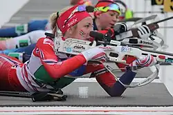 Emilie Ågheim Kalkenberg am Schießstand während des Jugendstaffelrennen