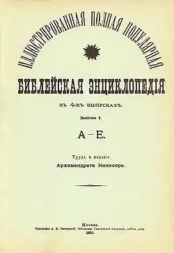 | Illjustrirowannaja polnaja populjarnaja Bibleiskaja enziklopedija; Иллюстрированная полная популярная Библейская энциклопедия; Illjustrirovannaja polnaja populjarnaja Biblejskaja ėnciklopedija; Illustriertes vollständiges populäres Bibellexikon; Biblische Enzyklopädie des Archimandriten Nikifor; Библейская энциклопедия архимандрита Никифора; Bibleiskaja enziklopedija archimandrita Nikifora; Biblejskaja ėnciklopedija archimandrita Nikifora |