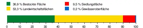 Das Einzugsgebiet besteht zu 36,9 % aus bestockter Fläche, 53,3 % aus Landwirtschaftsfläche, zu 9,5 % aus Siedlungsfläche und zu 0,2 % aus Gewässerfläche.