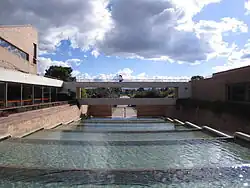 Eingang der BibliothekBrunnen am HaupteingangBrunnen auf der Rückseite der Bibliothek