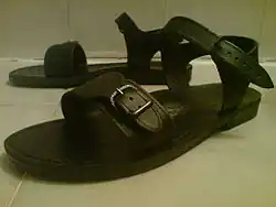 In den 1980er Jahren begann die deutsche Firma Birkenstock, Schuhe nach Israel zu exportieren. Ihr Erfolg motivierte die israelische Schuhfirma Teva Naot aus dem Kibbutz Neot Mordechai in Obergaliläa, anatomisch geformte Sandalen zu entwickeln; sie erwarb das Birkenstock-Patent. Die Teva-Sandalen, die im Gegensatz zu klassischen biblischen Sandalen eine flexible Sohle haben, wurden in Israel populär und verdrängten die Biblischen Sandalen als Markenzeichen des Sabra.[8] Andererseits werden die anatomischen Sandalen von Teva Naot ebenso wie die Sandalen von Nimrod und die Shoresh-Trekkingsandalen von Source Vagabond Systems (Tirat Carmel südlich von Haifa) auch als Typen der Biblischen Sandalen bezeichnet.[9]