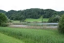Der Bichelsee ist ein flacher See mit etwa 300 Meter Durchmesser. Der westliche Teil mit dem Strandbad liegt schon auf dem Gebiet des Kantons Zürich.