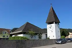 Evangelische Kirche, erbaut nach dem Proportionssystem Le Corbusiers