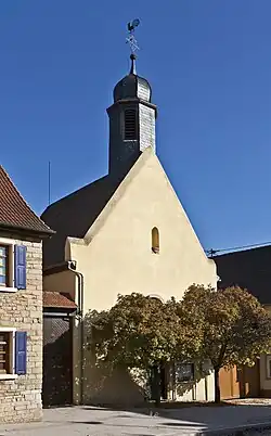 - Die evangelische Kirche ist ein spätbarocker Saalbau, bezeichnet 1770, mit einem Sandsteinquaderturm von 1901. Die Ausstattung stammt aus der Erbauungszeit. Im Chor befindet sich der Wappengrabstein von Margarete von Biebelnheim, 1589. Der Orgelprospekt stammt von 1780.[10]