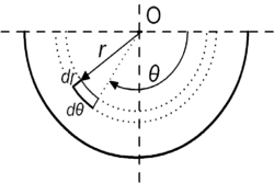 Die Biegelinie einer Kreismembran lautet dann in Differentialform, unter Vernachlässigung von kleinen Termen höherer Ordnung sowie von Zugspannungen (nur zulässig für geringe Dehnungen):