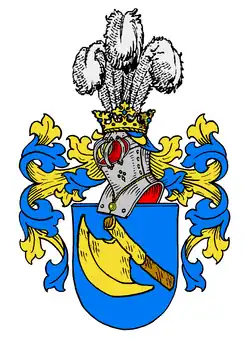 Das 1791 verliehene redende Wappen zeigt nach dem Diplom im blauen Feld ein schrägrechts gestelltes goldenes Beil an einem hölzernen Stiel. Auf dem gekrönten Helm finden sich drei weiße Straußenfedern. Die Helmdecken sind golden und blau. Abweichend wird das Beil auch in Silber dargestellt.