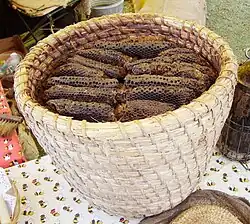 Zur besseren Wärmedämmung werden Bienenkörbe meist mit einem Kuhdung/Torf-Gemisch bestrichen. Im Inneren schaffen sich die Bienen ihre Bienenwaben als Naturwabenbau, der fest mit dem Bienenkorb verbunden ist. Zur Stabilisierung des Wabenbaus steckt der Imker von außen sogenannte Speile durch den Korb. Dies sind schmale, aus Rosenholz, Holunder oder Weide gefertigte Holzstöcke. Der Nachteil dieses Stabilbaus besteht darin, dass für den Imker ein Einblick in das Bienenvolk ohne Zerstörung des Wabenbaus nicht möglich ist. Bei der Honigernte schneidet der Imker die Honigwaben aus dem Korb heraus. Da der Korb dafür umgestülpt wird, werden Bienenkörbe auch als Stülper bezeichnet. Der Honig wird durch Auspressen der Waben gewonnen oder es werden Wabenstücke als Scheibenhonig verkauft.