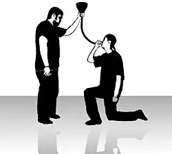 Das Gerät besteht aus einem langen Schlauch, an dessen oberem Ende ein Trichter befestigt ist. Um den vorzeitigen Abfluss des Getränks während der Befüllung zu vermeiden, kann das untere Ende mit einem Kugelhahn[2] ausgestattet sein. Durch Anheben des Trichters, in dem sich das Getränk befindet, wird in der Flüssigkeitssäule ein Druck aufgebaut, der den schnellen Konsum des Getränkes beim Öffnen des Hahns ermöglicht.