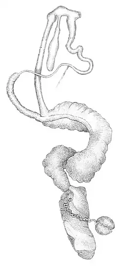 Im Genitalapparat ist die Zwitterdrüse recht groß und lappig. Der Zwittergang ist sehr dünn und nahe dem Übergang zum Eisamenleiter (Spermovidukt) stark gewunden oder gekräuselt. Der Eisamenleiter ist vergleichsweise kurz und trennt sich rasch in (freien) Eileiter (Ovidukt) und (freien) Samenleiter (Vas deferens), die daher relativ lang sind. Der untere Teil des Eileiters kurz vor der Mündung in das Atrium ist stark röhrenförmig erweitert. Die Bursa copulatrix mündet nicht in das Atrium, sondern in den unteren erweiterten Teil des freien Eileiters. Diese Samenblase ist länglich mit einem kurzen, aber eher dicken Stiel. Der Penis ist vergleichsweise kurz, dick, walzenförmig, weniger als die halbe Körperlänge lang und stark gefaltet. Das hintere Ende ist meist nach vorne gebogen. Der vergleichsweise schwache Penisretraktormuskel inseriert auf diesem nach vorne gebogenen Teil aber etwas vom Apex entfernt. Etwas dichter zum Apex mündet der Samenleiter in den Penis. Der Samenleiter ist kurz, verläuft fast gerade und ist mit dem Penis durch ein Häutchen verbunden.