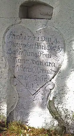Der ummauerte Friedhof besitzt einige barocke Grabdenkmäler.