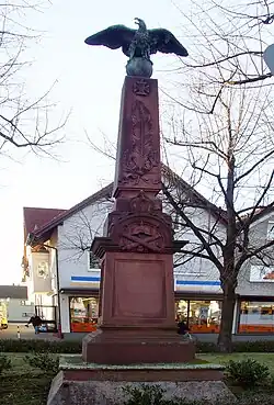 Das die Ortschaft überragende Bauwerk ist die in der Umgebung höchste katholische Kirche Heilig Kreuz von Heinrich Hübsch, deren Kirchweihe 1863 stattfand. In ihr befinden sich zwei Fenster des Künstlers Emil Wachter. Das erste Fenster befindet sich direkt über dem Hauptportal der neuen Kirche, das zweite Fenster ist in der Sakristei zu sehen. Ein drittes Fenster findet sich in der Leichenhalle, dieses war zuvor im Chor der neuen Kirche installiert.
