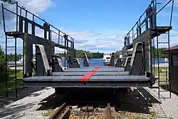 Ein gleichartiges Schicksal hatte das Abstiegsbauwerk Nr. 43, das als Swift Rapids Marine Railway im Jahr 1919 eröffnet wurde.