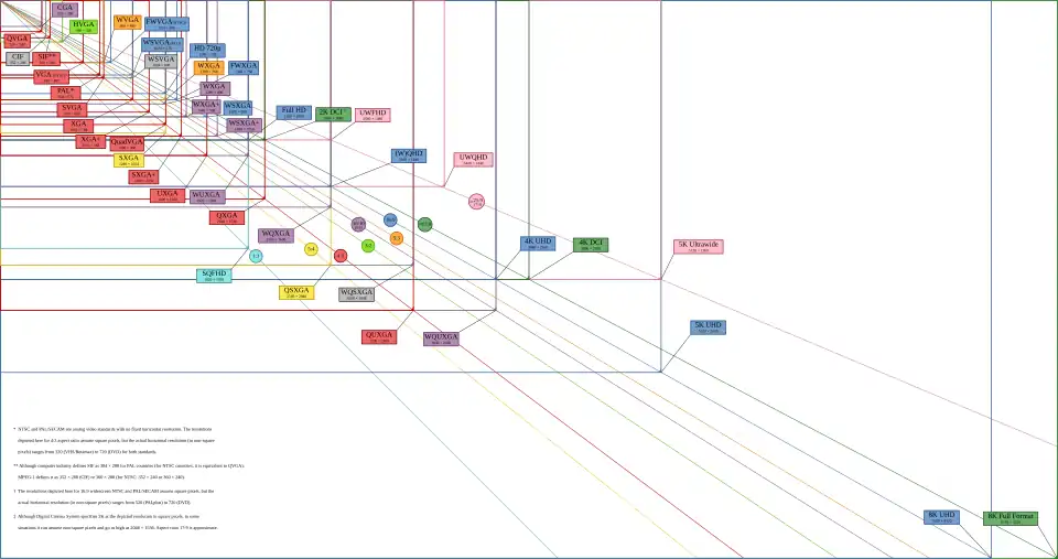 | WHUXGA | Wide HUXGA | 7680 | × | 4800 | 8∶5 | 8∶5 | 1∶1 | 36.864.000 |