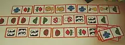 Dieses eignet sich zur Festigung des Leselernprozesses. Anstatt eines zweiten Bildes ist ein Wort aufgeschrieben. Dieses muss nun erlesen und gefunden werden. Verschiedene Regeln sind möglich.