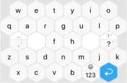 Die 2015 in der Schweiz in Kooperation mit der ETH Zürich für Smartphones entwickelte Bildschirmtastur-Software „Typewise“ zeigt sechseckige Tastenfelder in Waben-Anordnung.[5][6][7] Die Tasten sind wie die der jeweiligen traditionellen Tastatur angeordnet, mit einigen Änderungen.[8] Anstatt der großen Leertaste gibt es zwei kleinere in der Mitte, die mit den Daumen gut erreichbar sein sollen. Die Umschalttaste wird durch das Hochwischen auf Tasten und die Rücksetztaste durch das Wischen nach links auf der Tastatur ersetzt.[9] Umlaute können durch das Halten auf einer Taste aufgerufen werden.