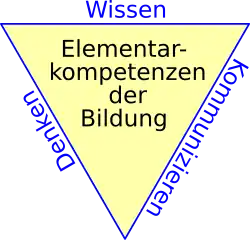Elementare Aspekte der Bildung sind symbolisch als gleichseitiges Dreieck darstellbar, wobei jede Seite gleichberechtigt ist. Die drei Seiten stehen dabei symbolhaft für Wissen, Denken und Kommunikationsfähigkeit. Wissen umfasst dabei die Wissensinhalte (deklaratives Wissen), das Denken hingegen die unterschiedlichen Strategien des Erkenntnisgewinns wie Problemlösen, Beschreiben, Erklären, Interpretieren usw. Unter Kommunikationsfähigkeit kann in diesem Zusammenhang die Fähigkeit eines Menschen verstanden werden, seine Gedanken, Ideen, Thesen usw. anderen transparent zu machen und umgekehrt sich in die Gedankenwelt anderer aktiv hineinzuversetzen.