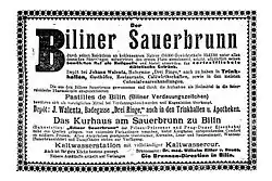 - ↑ M. Kral, Wien – BILINER Sauerbrunn – hervorragender Repräsentant der alkalischen Säuerlinge, von 1910.