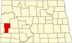 Das County liegt im Südwesten von North Dakota, ist im Westen etwa 45 km von der Grenze zu Montana entfernt und hat eine Fläche von 2987 Quadratkilometern, wovon 5 Quadratkilometer Wasserfläche sind. Es grenzt im Uhrzeigersinn an folgende Countys: McKenzie County, Dunn County, Stark County, Slope County und Golden Valley County.