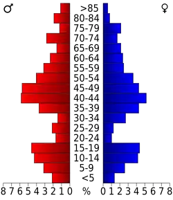 Auf das gesamte County bezogen setzte sich die Bevölkerung zusammen aus 24,9 Prozent Einwohnern unter 18 Jahren, 4,5 Prozent zwischen 18 und 24 Jahren, 26,6 Prozent zwischen 25 und 44 Jahren, 28,0 Prozent zwischen 45 und 64 Jahren und 16,0 Prozent waren 65 Jahre alt oder darüber. Das Durchschnittsalter betrug 42 Jahre. Auf 100 weibliche Personen kamen 112,9 männliche Personen. Auf 100 Frauen im Alter von 18 Jahren oder darüber kamen statistisch 112,4 Männer.