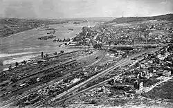 Im Jahr 1900 wurde der Betrieb des Trajekts eingestellt und einige Jahre später durch die Hindenburgbrücke ersetzt. Diese Eisenbahnbrücke zwischen Bingerbrück und Rüdesheim wurde in den Jahren 1913 bis 1915 erbaut und im Zweiten Weltkrieg zerstört. Seitdem gibt es bei Bingen für Züge keine Möglichkeit zur Überquerung des Rheins. Auch der Bahnhof selbst war im Zweiten Weltkrieg Ziel von Luftangriffen der Alliierten, wie z. B. am 29. Dezember 1944.[3] Im Bahnhofsbereich waren 19,6 km Gleis, 198 Weichen und fünf Stellwerke zerstört.[4] Unmittelbar vor dem Zusammenbruch am Ende des Zweiten Weltkriegs wurde dem Bahnhof am 15. Februar 1945 noch der Bahnhof Bingen (Rhein) (heute: Bingen Stadt) zugeschlagen.[5]