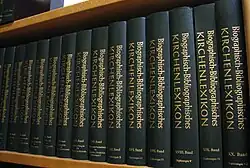 - Friedrich Wilhelm Bautz, ab Band 3 fortgeführt von Traugott Bautz, ab Band 41 fortgeführt von Uta Timpe-Bautz (Hrsg.): Biographisch-Bibliographisches Kirchenlexikon. 14 Bände (+ Ergänzungsbände), Bautz, Hamm 1975 ff.