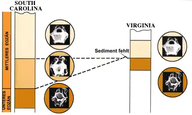 Bis 1830 gliederten Charles Lyell das Tertiär in Südfrankreich, Gérard-Paul Deshayes die Gesteinsabfolge im Pariser Becken und Heinrich Georg Bronn das italienische Tertiär mittels Fossilien. In der Untergliederung des ehemaligen Primärsystems wurden 1838 durch den Vergleich von unter- und überlagernden Fossilinhalten lithologisch ganz verschiedenartige, räumlich weit auseinanderliegende Gesteinsschichten als zeitlich äquivalente Ablagerungen gedeutet.[2] Der von Alcide d’Orbigny 1852 als Étage eingeführte Vorläufer des Zonenbegriffs[3] bezeichnet noch heute als „Biozone“ die biostratigraphische Grundeinheit der Gliederung mittels Fossilien.[4] Neben den ursprünglich zur Gliederung verwendeten Fossilgruppen (Orthochronologie)[5] wurden nach und nach durch paläontologisch arbeitende Stratigraphen weitere Fossilgruppen (Parachronologie)[6] nutzbar gemacht. In der modernen Biostratigraphie werden seit der zweiten Hälfte des 20. Jahrhunderts Gliederungen durch Serien faktisch lückenlos verfolgbarer, stammesgeschichtlicher Linien (evolutionäre Reihen) angestrebt. Eine neue Entwicklung ist die Nutzung aller horizontiert aufgesammelter, einem Taxon zuordenbarer fossilen Individuen durch rechnergestützte Verfahren.[7]